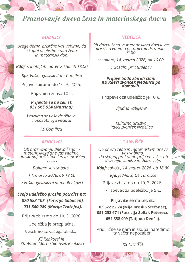 Praznovanje dneva žena in materinskega dne